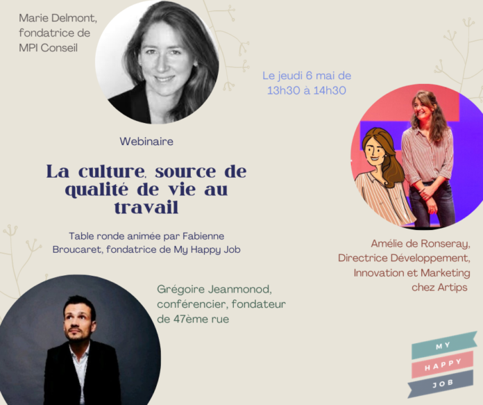 My Happy Job vous propose le 6 mai 2021 à 13h30 un nouveau webinaire dédié à la culture, source de qualité de vie au travail.